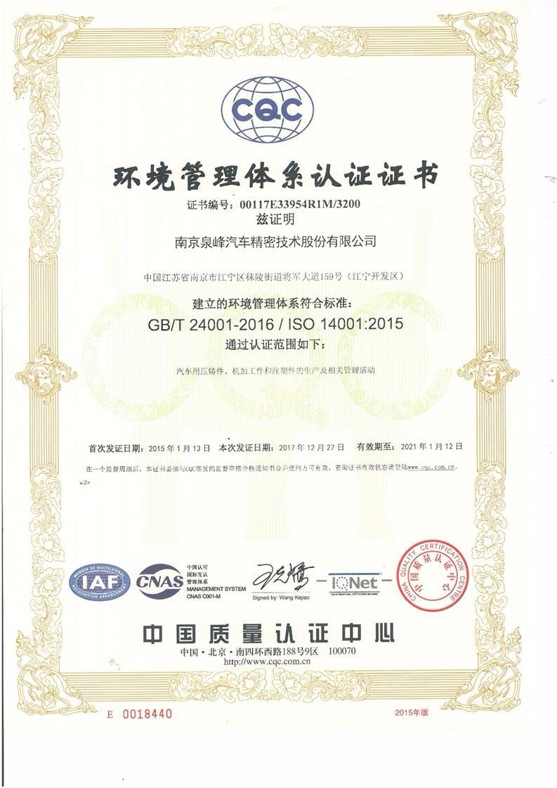 Environmental System Certificate - Automobile(2018)