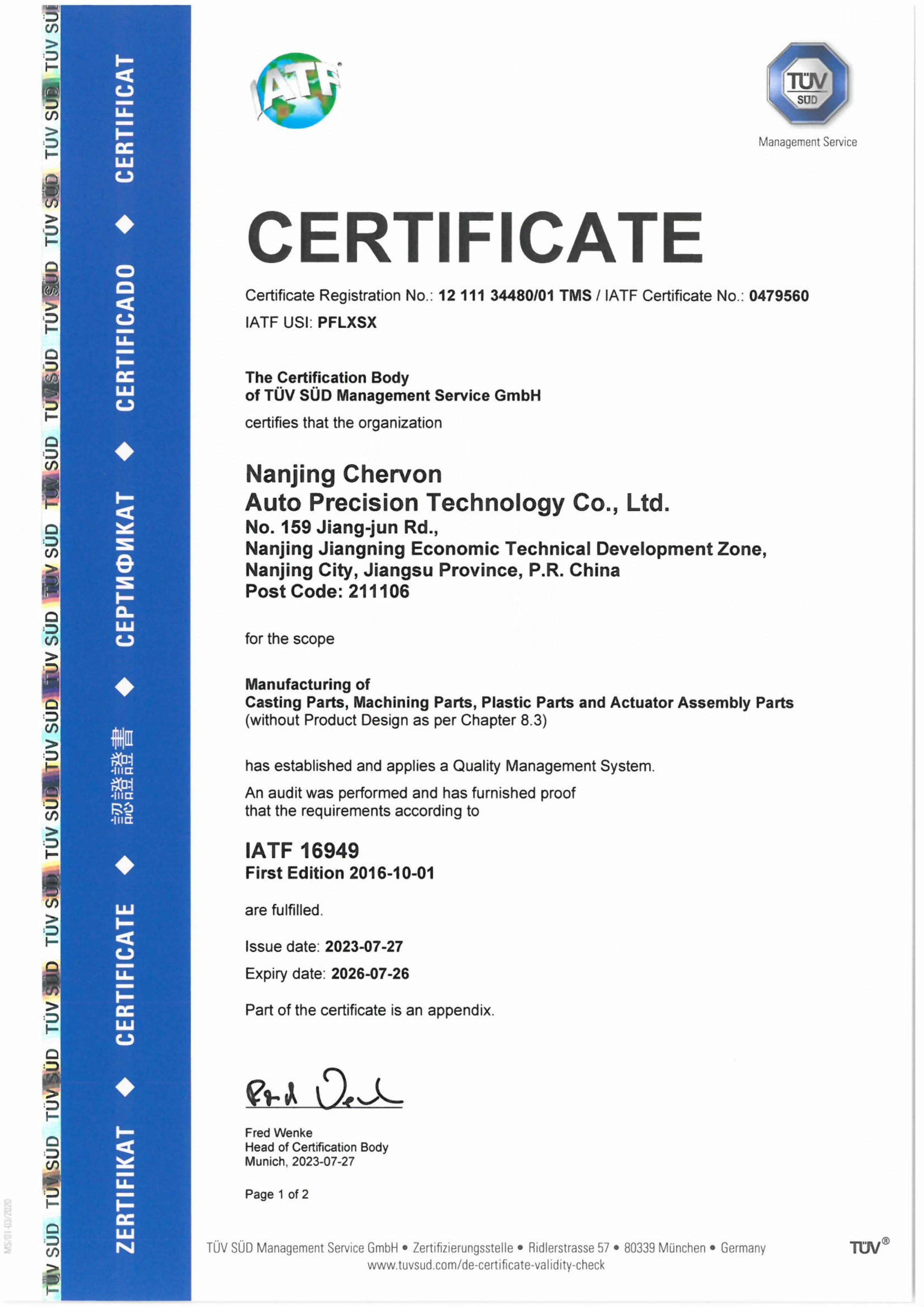 IATF16949 Certificate 2023 2026